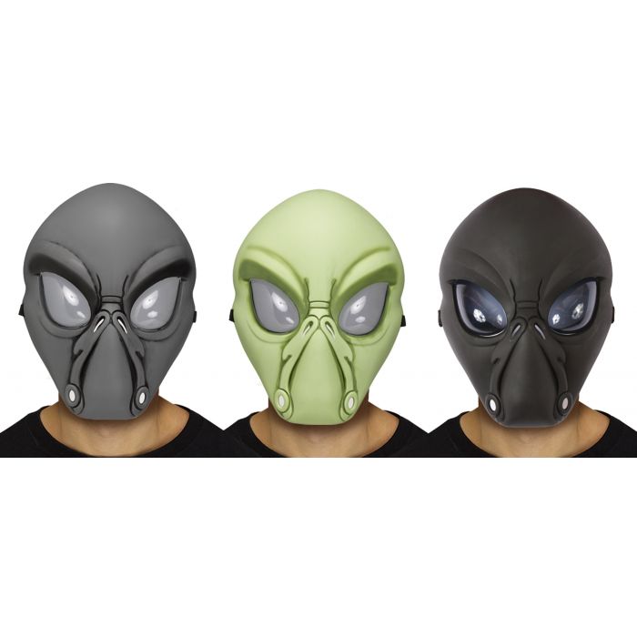 This Alien mask is an easy wear option. Full front only mask in 3 color options. Black, Grey or Green. Add this to your cart and add a note for what color you want!
