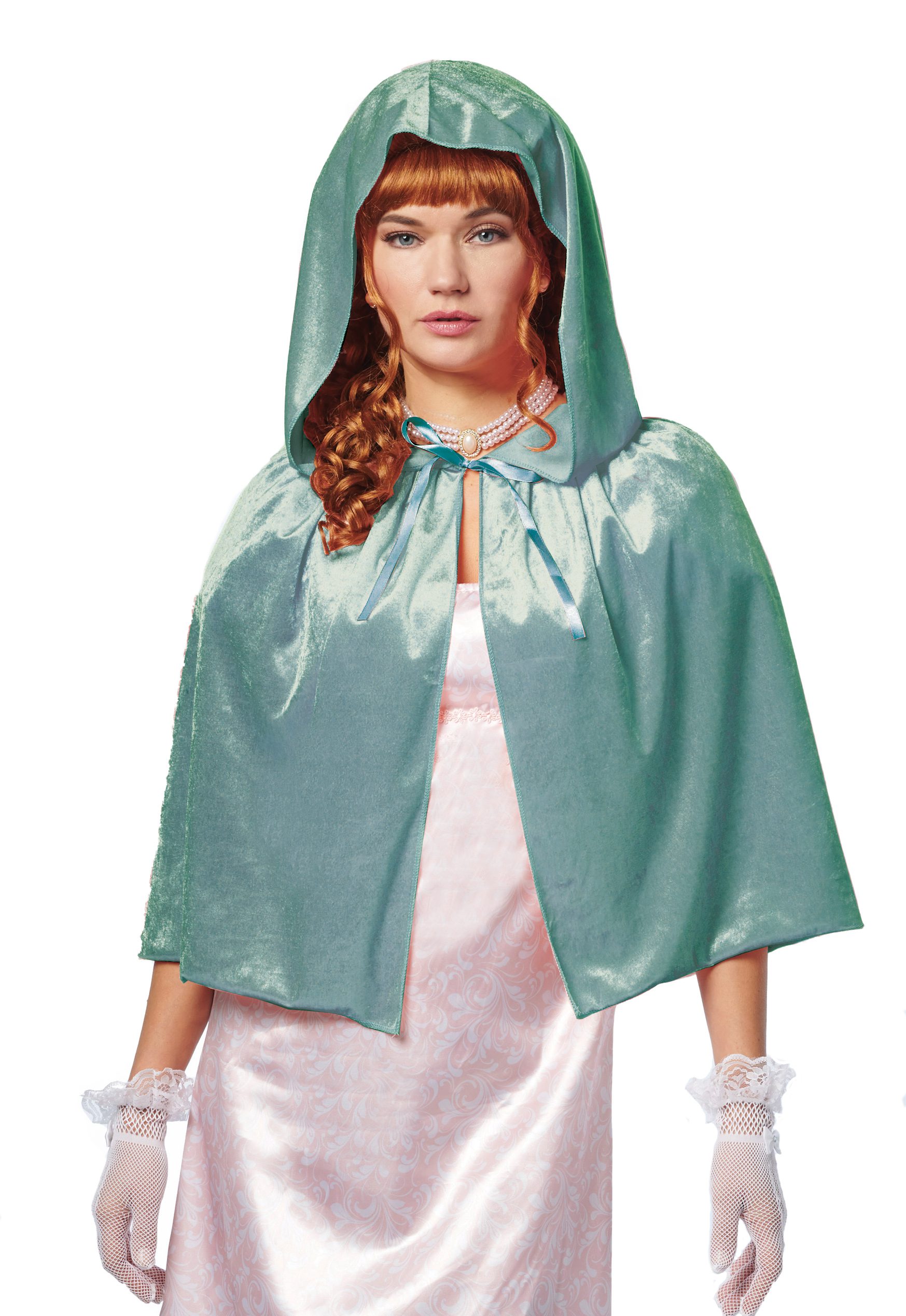 Shoulder length, hooded capelet. Comes in several colors.