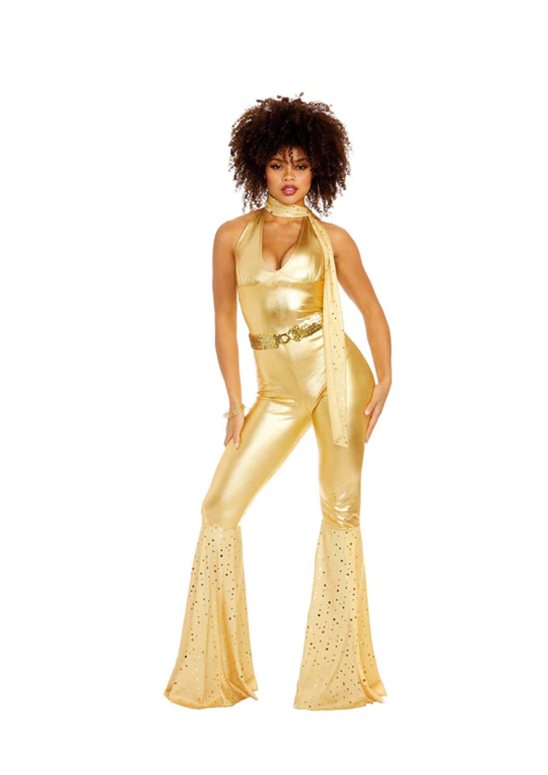 The DISCO FOX GOLD LARGE costume features a shiny disco-inspired design and offers a comfortable fit, making it ideal for adult parties and themed events.