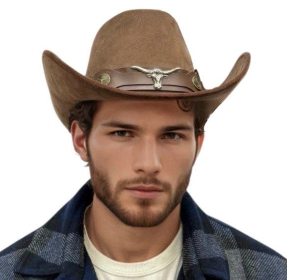 Capture the spirit of the West with this Brown Longhorn Cowboy Hat, featuring a bold bull emblem. Great for rodeos, Western parties, Halloween, and cowboy-themed events.