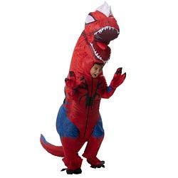 Look out: here comes the amazing Spider-Rex Costume. This Cretaceous spider king roars to life through fan-operated inflatable nylon. Its spider emblem is printed below a face window to give the wearer full visibility beneath its heroic snout. It also includes a pair of clawed gloves to defend the Savage Land from Venomosaurus. Collect this Spider-Rex costume and fuse ultimate power with ultimate responsibility. Fan with battery pack. Officially licensed by Marvel.